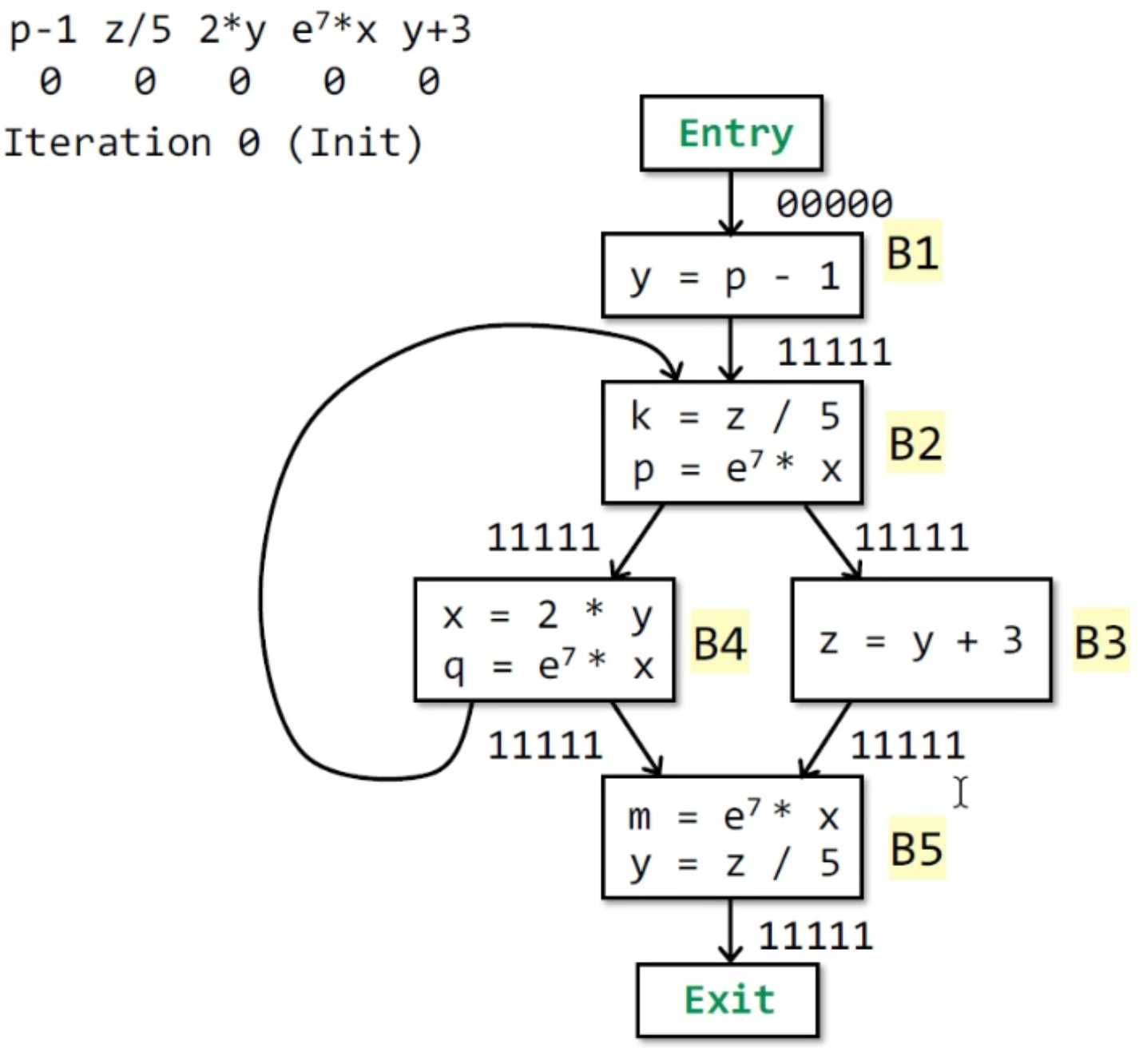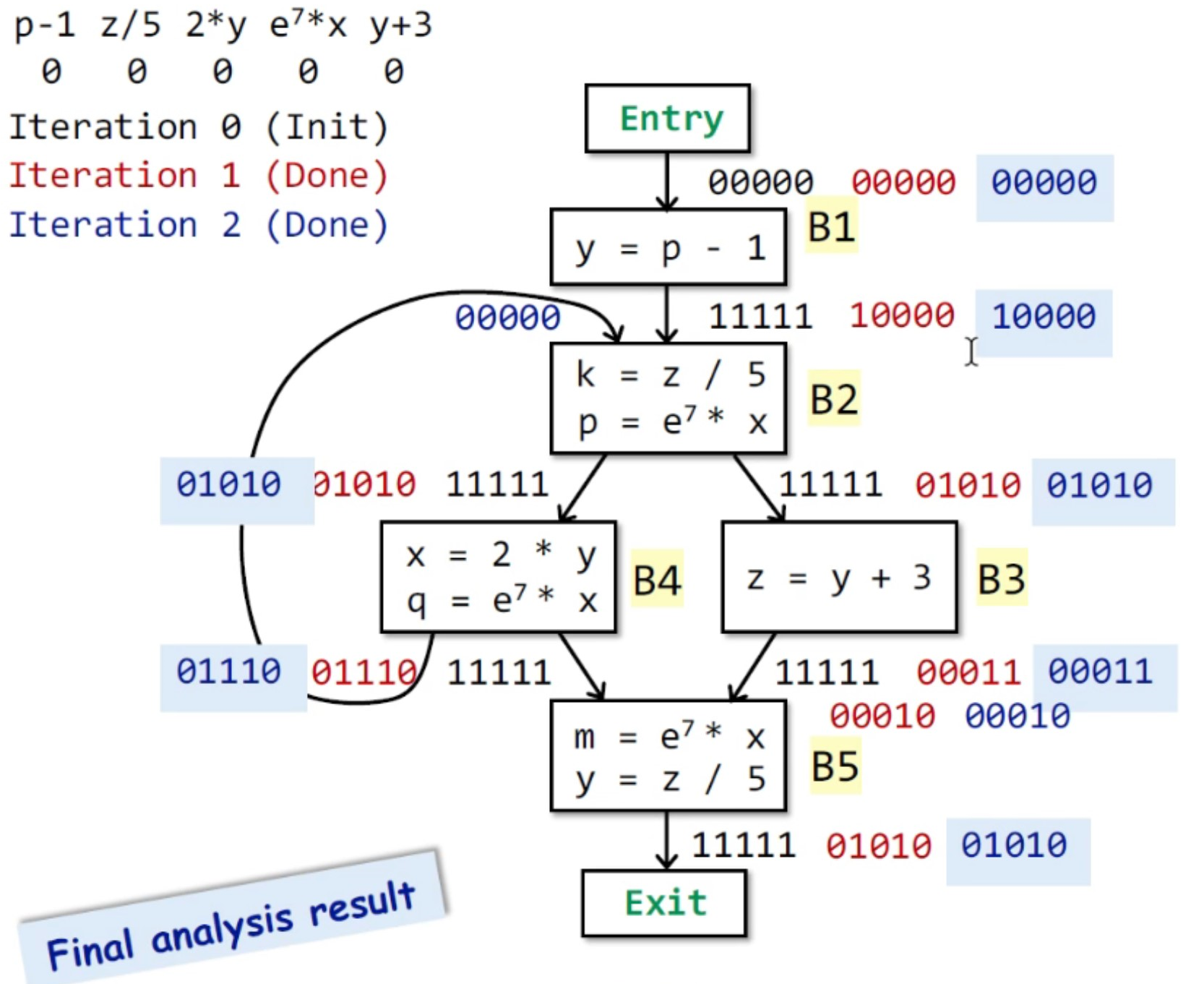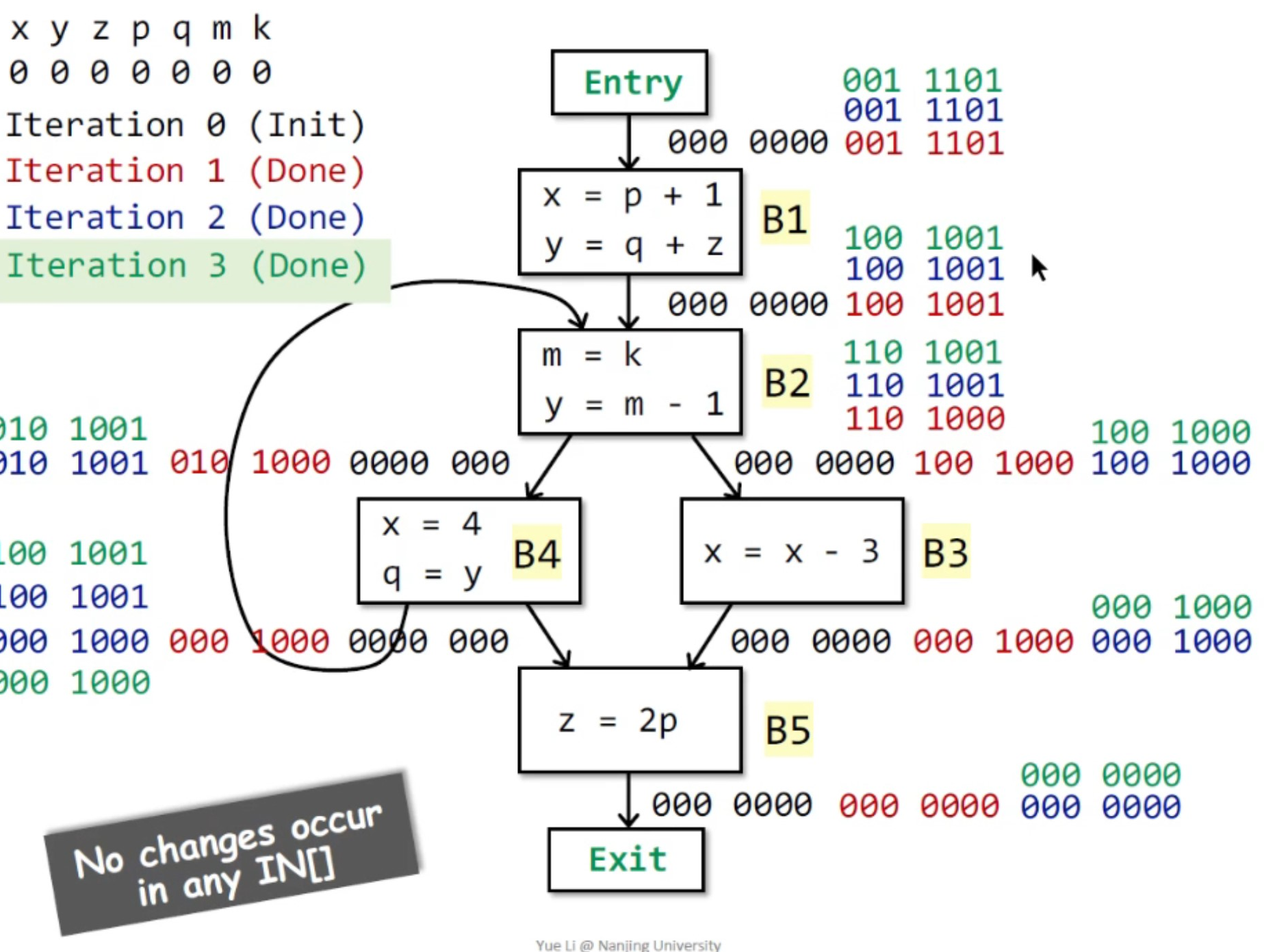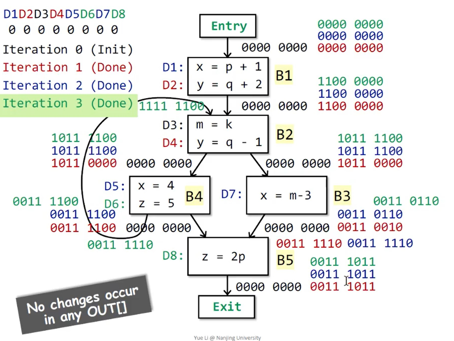 | Initialization | OUT[B] = Φ | IN[B] = Φ | OUT[B] = ∪ |