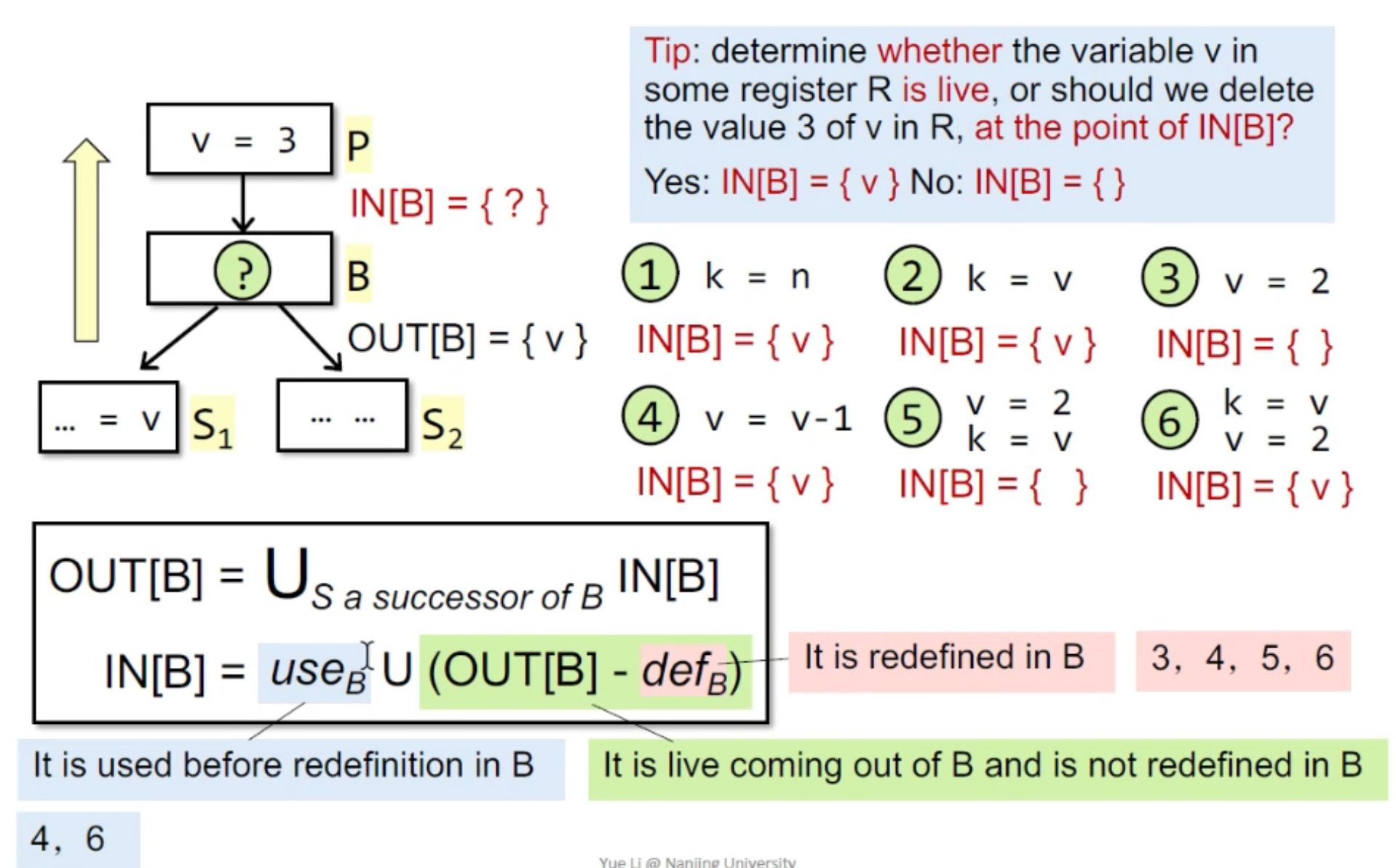 控制流:$OUT[B] = \cup_{S\ a\ successor\ of\ B}IN[B]$