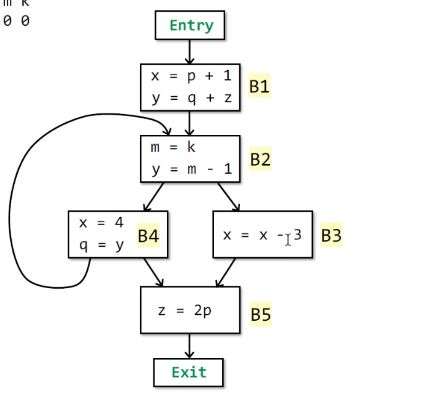 x + y 在 p 点可用的条件:从流图入口结点到达 p 的每条路径都对 x + y 求了值,且在最后一次求值之后再没有对 x 或 y 赋值
